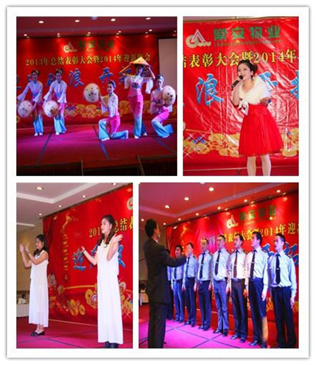 常安物業(yè)年終總結表彰大會暨迎新晚會于2014年1月17日在學府路順德佬圓滿結束。整個活動分為三個環(huán)節(jié)。1、2013年終總結大會。張總在會議上對公司一年主要工作、取得的成績做了通報,對2013年表現(xiàn)優(yōu)秀的服務中心、個人給予表彰。2、迎新晚會。各部門、服務中心的精彩表演;搞笑、歡樂的游戲;激動人心的抽獎將整晚的活動拉向高潮。3、歡樂晚宴。我們共同舉杯,開懷暢飲,慶祝2013年的輝煌,迎接新一輪的挑戰(zhàn)。