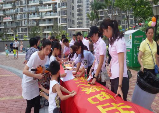 活動當天,物業(yè)服務中心在活動現(xiàn)場進行了綠色物業(yè)的宣傳及“踐行低碳生活,倡導綠色出行”、“參與垃圾分類、共建綠色崇文承諾書”、“創(chuàng)建綠色生態(tài)小區(qū)、倡導綠色出行活動”倡議書的簽名及發(fā)放宣傳活動,人員參與性熱情高漲,達到了預期的效果和目的。以多種游戲的形式,讓小朋友熱情對參與六一兒童活動,期間又開展了對小朋友的垃圾分類的宣傳、引導工作,為創(chuàng)建工作奠定了堅實基礎(chǔ)。
