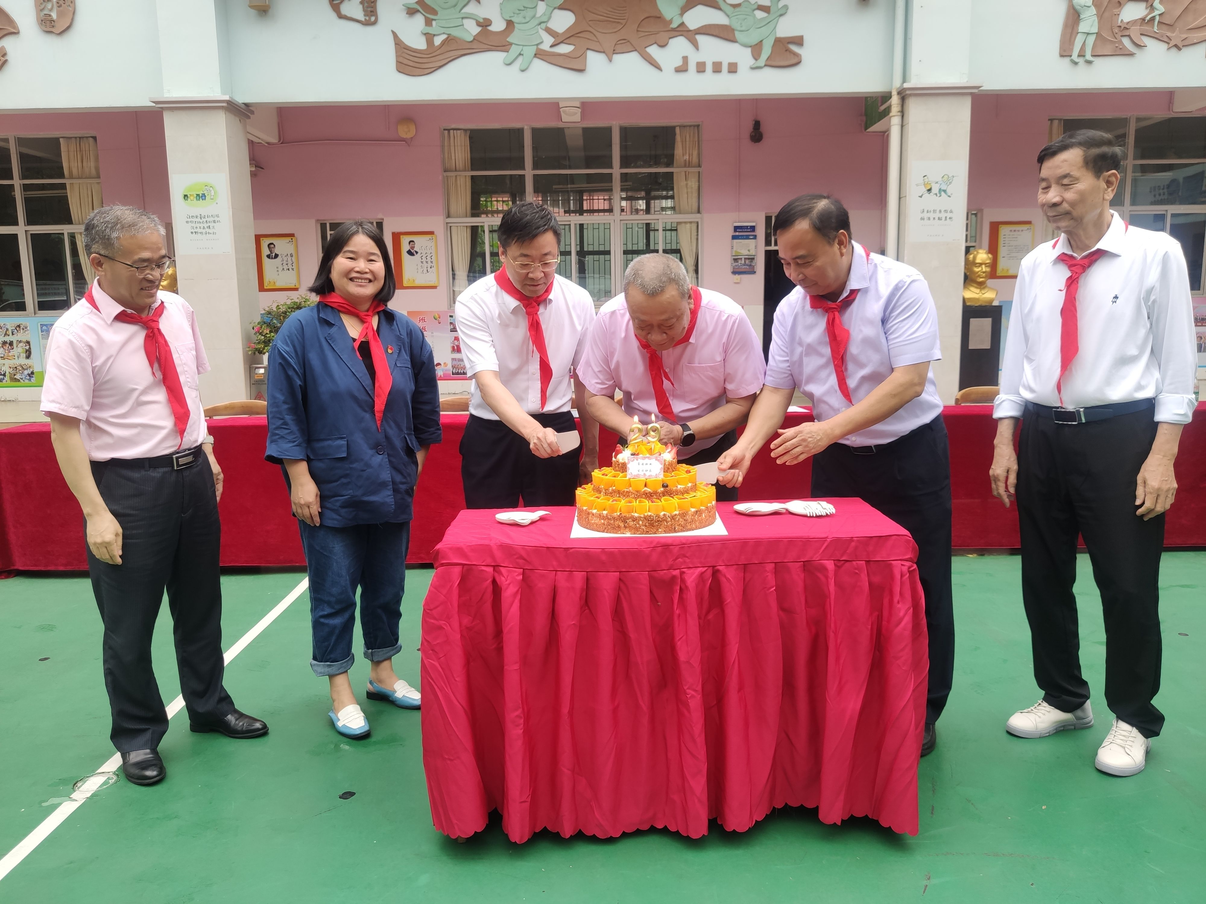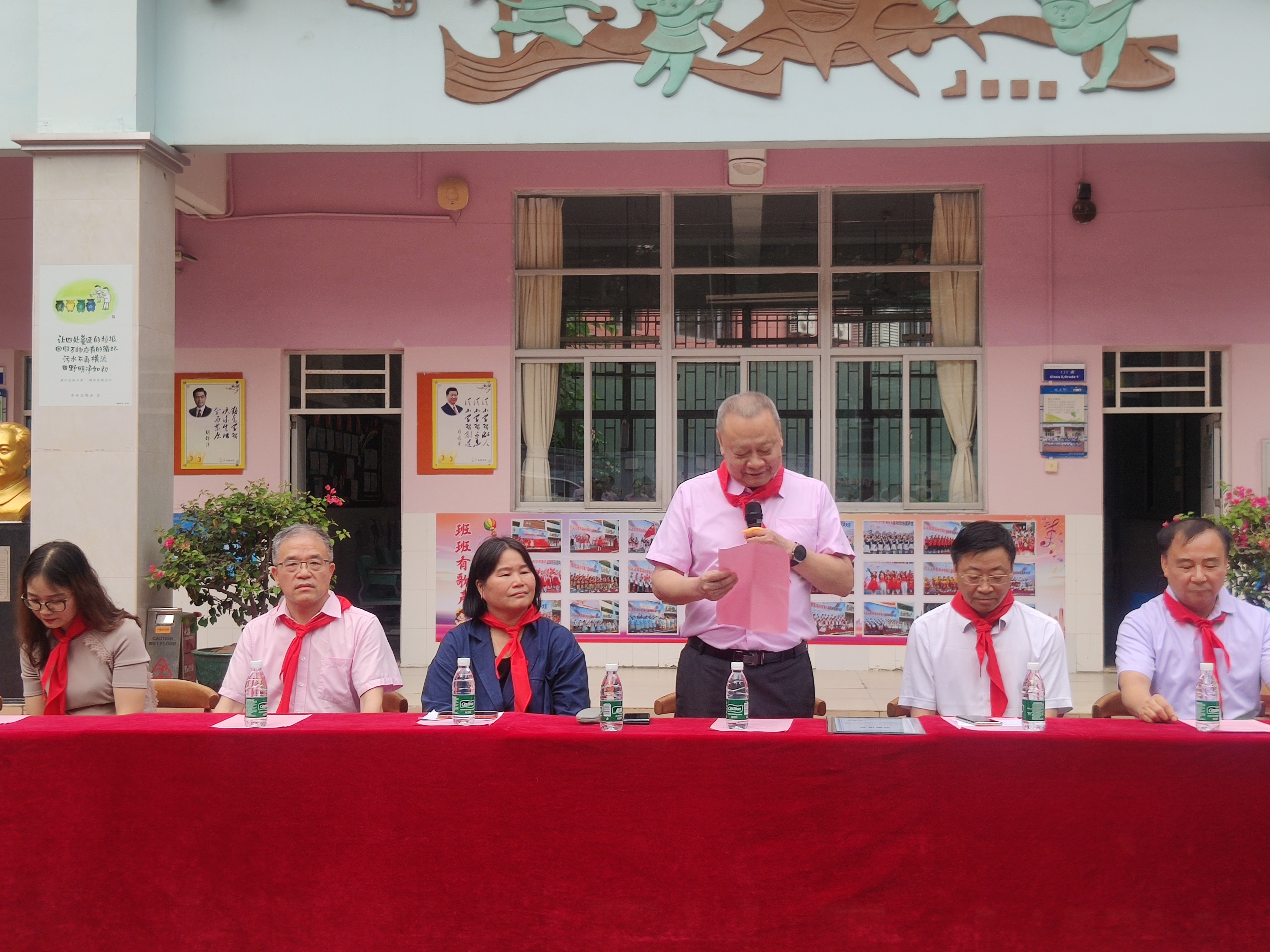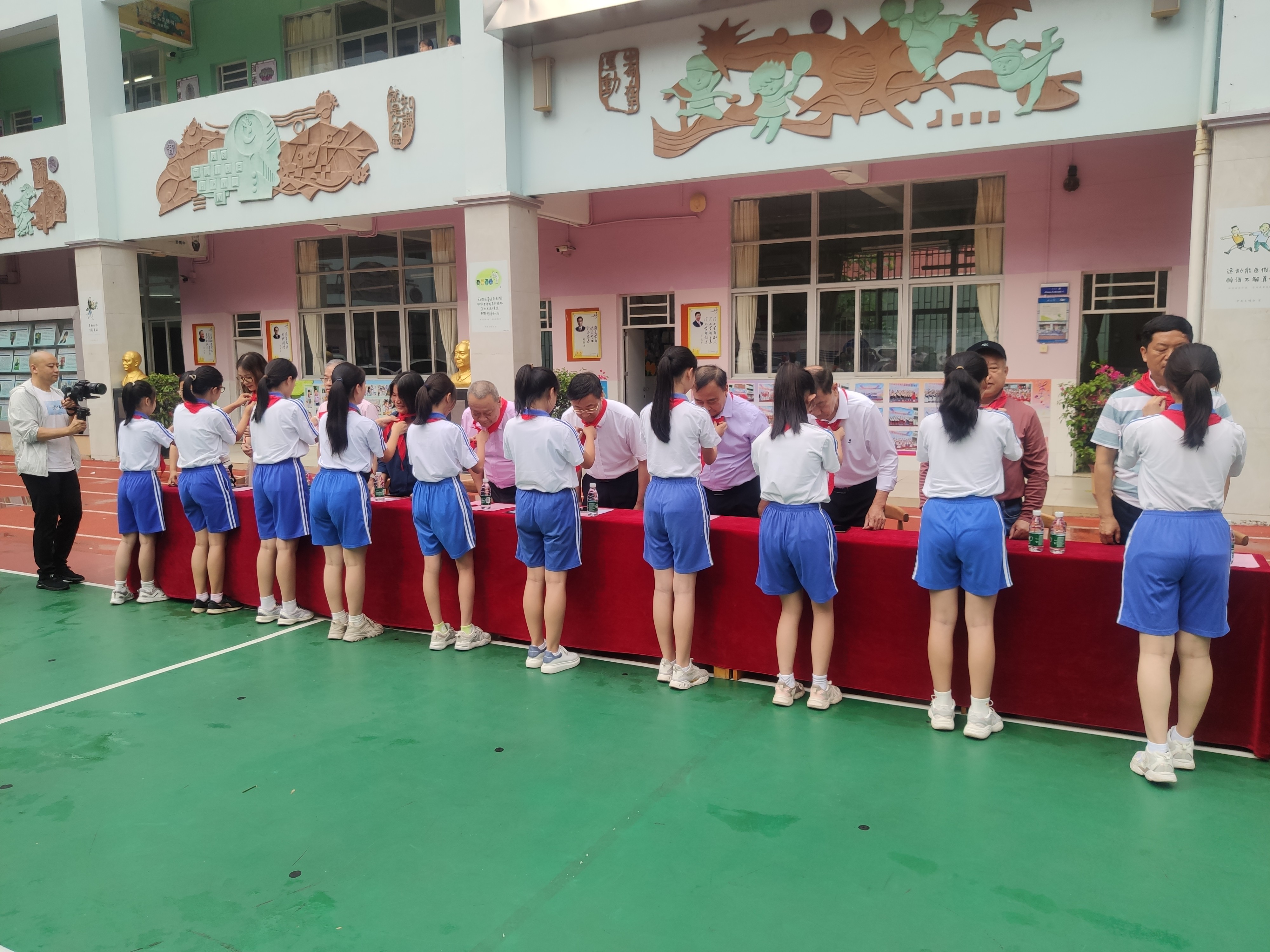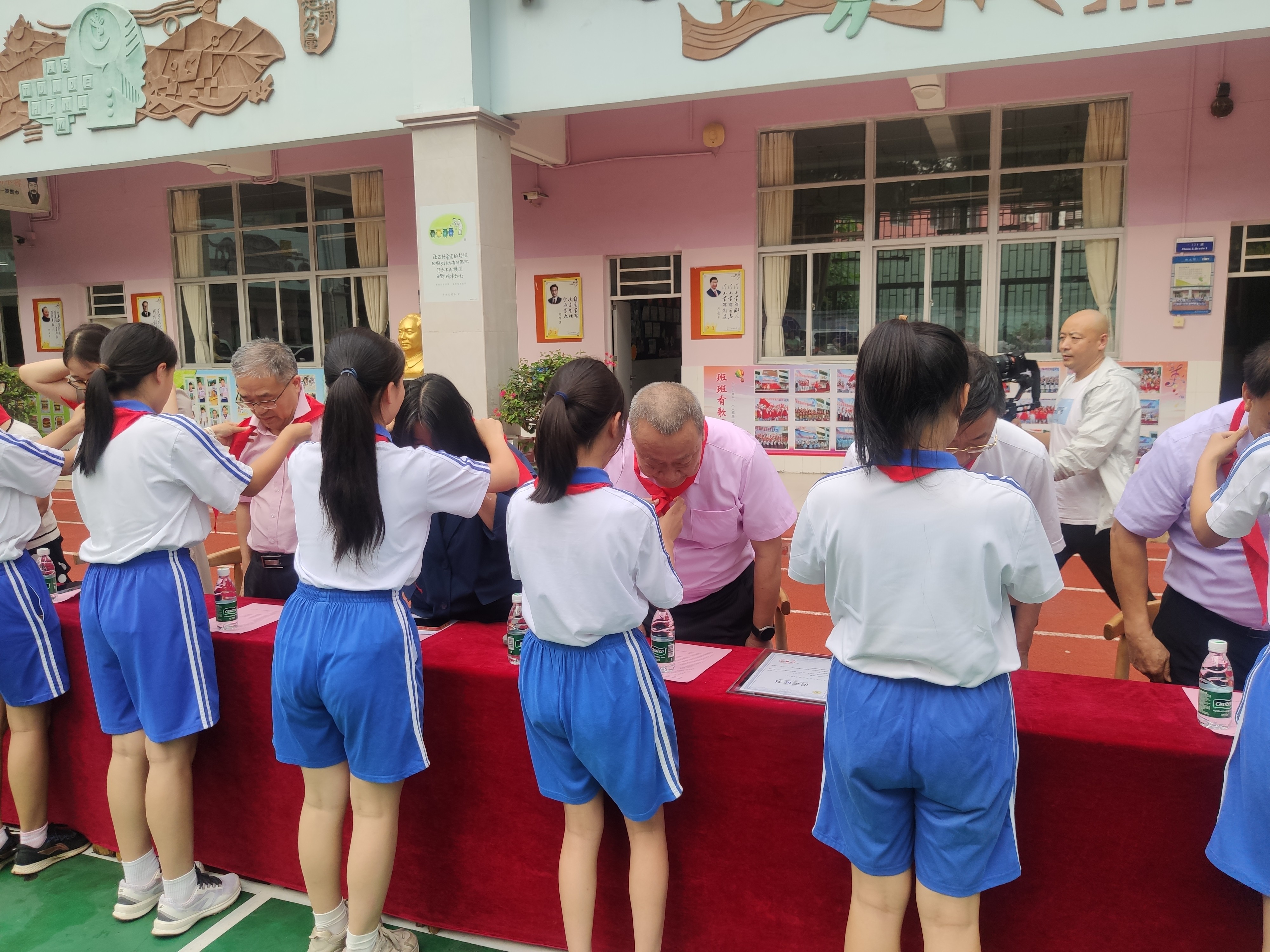 6.東灣小學(xué)少先隊員為在座的領(lǐng)導(dǎo)系紅領(lǐng)巾。